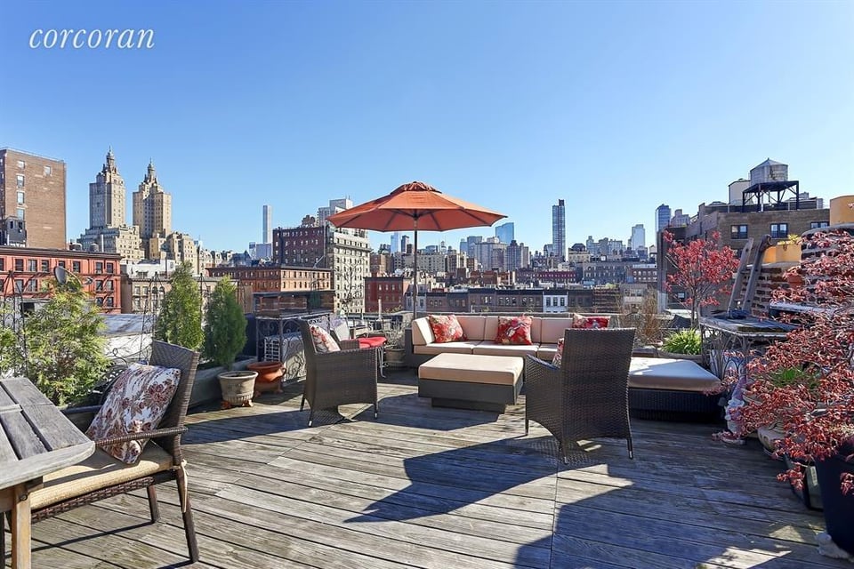 Immediately transport from city to serenity once you set foot inside this uber charming home with wood burning fireplaces, high ceilings and fully renovated kitchen and baths. Stainless appliances and granite counters in lovely open kitchen, washer dryer, spacious floor plan with North South exposure make this a charming duplex not to miss. It's once you make your way up the beautiful staircase to the master suite and rooftop terrace that you'll truly feel like you are on top of the world! Fully furnished and ready for your outdoor cocktail parties, sunbathing, romantic dinners, or just a quiet escape, the views in all directions... you will be hooked. The intimate self managed coop has low maintenance and no underlying mortgage. Pet friendly and convenient to subways, restaurants, Museum of Natural History and of course, Central Park.