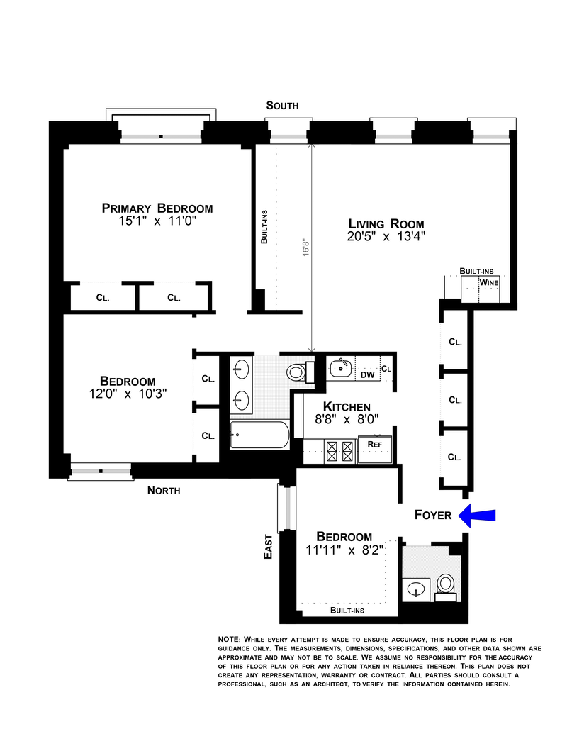 Owner to sand/stain floors prior to move-in. Super bright and sunny, this three bedroom home has five south facing windows spanning the side-by-side expansive living and dining room as well as the large master bedroom. Upon entering this gracious five-room home, you immediately notice the high ceilings, hardwood floors, charming pre-war details throughout and a perfectly orchestrated layout. The well-proportioned kitchen allows for easy cooking whether you are enjoying a quiet evening in or entertaining guests. Each of the three bedrooms are full-sized. The large dual sink full bathroom is easily accessed by the master and second bedrooms, and the half bath is conveniently located off the third bedroom. The apartment features abundant closet and storage space throughout, low monthly maintenance that includes Spectrum cable and internet service, and a large outdoor storage unit that transfers with the apartment. 315 West 99th Street, the Paramount, is a handsome Renaissance Revival eight-story building built in 1920. Residents enjoy the building's amenities, which include daily doorman service from 7:30AM - 1:00AM, a resident superintendent, renovated card-operated laundry room and recently renovated lobby. Situated on a beautiful tree-lined and architecturally rich street between West End Avenue and Riverside Drive, you are just seconds away from sprawling Riverside Park as well as dining, shopping and transportation including the nearby 1/2/3 trains. The building is pet friendly.