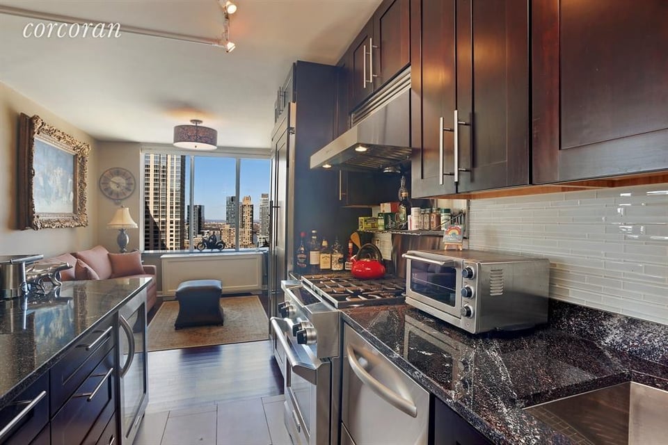 Super stunner. Incredible sunsets over lincoln center. You won't believe the beautiful southwest views from this 24th floor gem at the Harmony. Currently opened up to a lofty corner one bedroom unit, this easily converts back into a split two bedroom plan. As if that weren't enough,it has been meticulously renovated from top to bottom. The floor to ceiling door frames, custom remote controlled window treatments, and gleaming hardwood floors are just the beginning. The open kitchen has two drawer dishwasher, dual temperature wine fridge, professional grade range, and range hood with warming lights. The master bath has huge standing shower and a pocket door. Windowed second bath has a clawfoot tub. Great closet space throughout. The Harmony is a full service, pet friendly (one dog per apartment, please) building with excellent financials, friendly staff, new hallways, lobby and community room. NY Sports Club on site offers a great rate for residents. No flip tax!